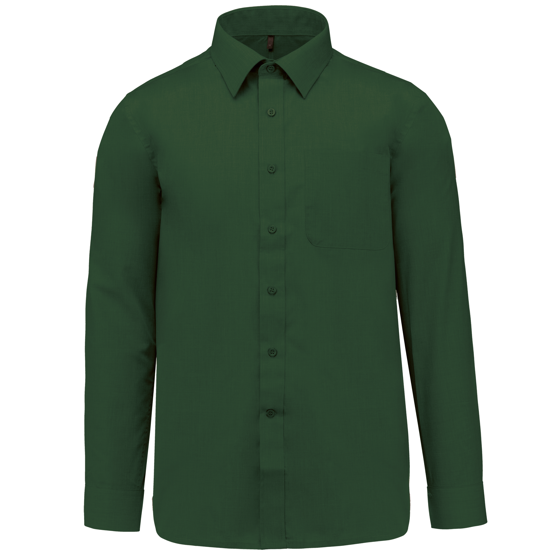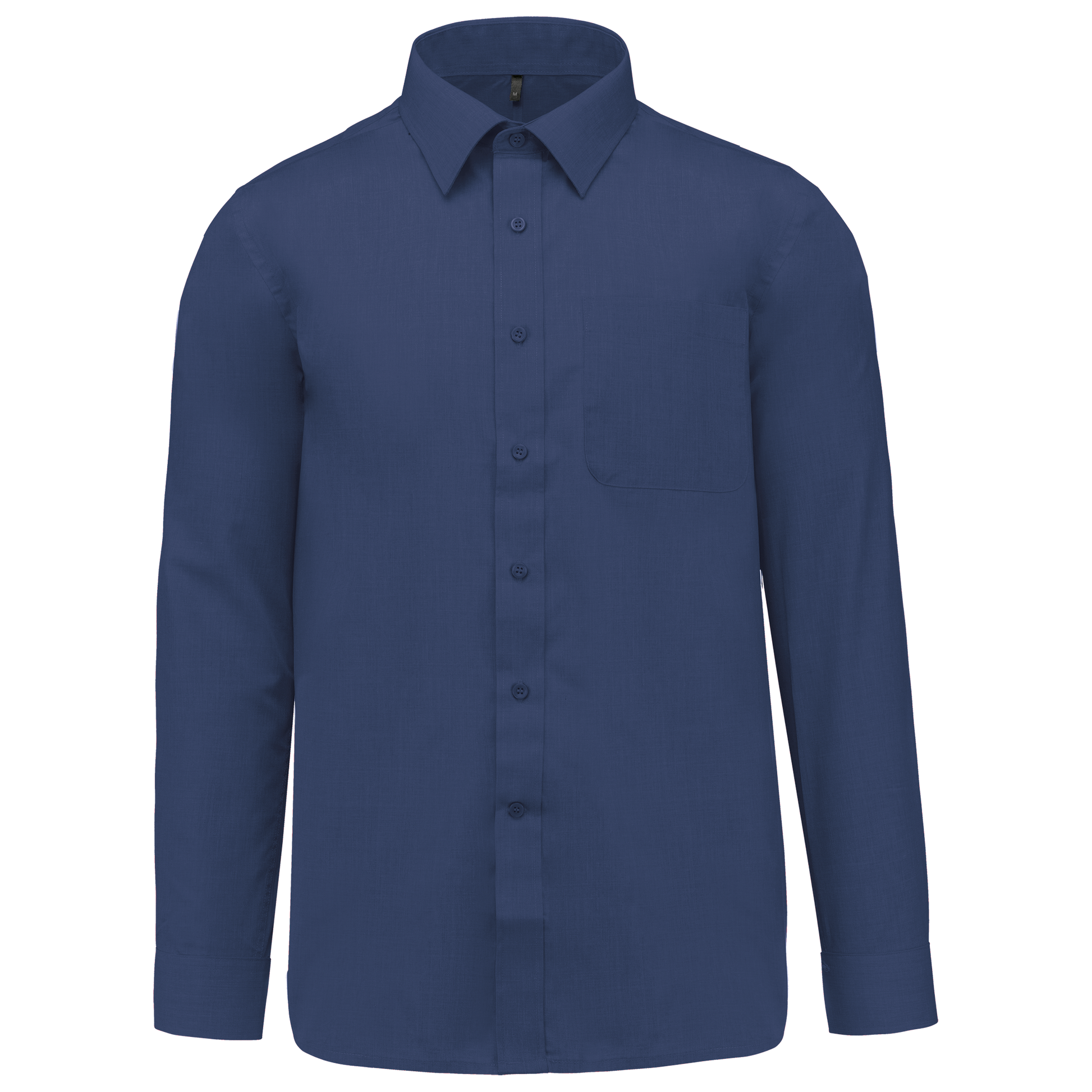 65% poliestere / 35% cotone popeline. Tessuto facile da stirare. Colletto alla Francese con stecche. Bottoni tono su tono. Taschino lato sinistro. Carrè posteriore. Cuciture a doppia piega. Polsino regolabile. 2 bottoni di ricambio.