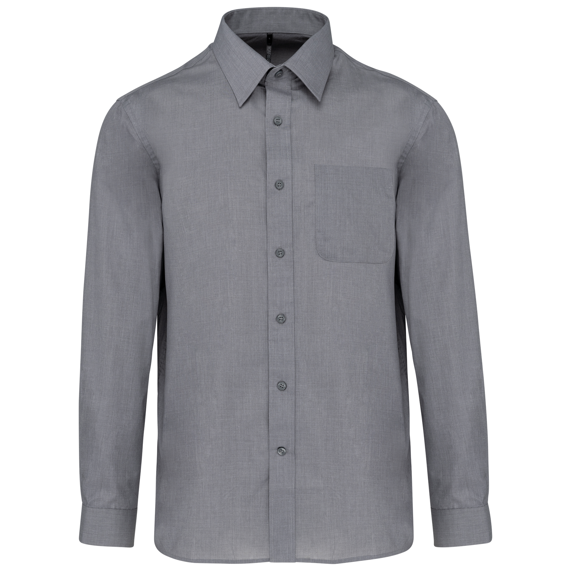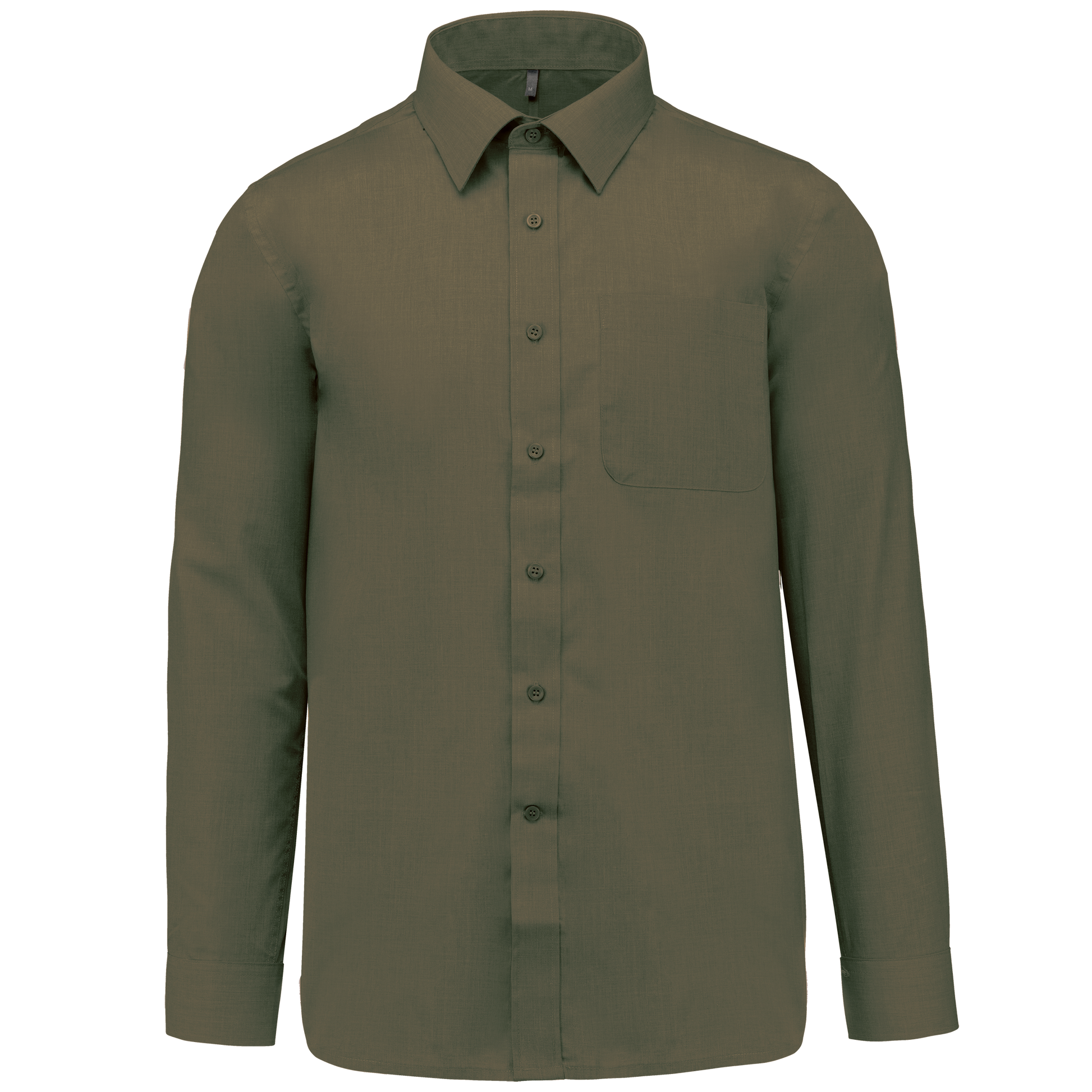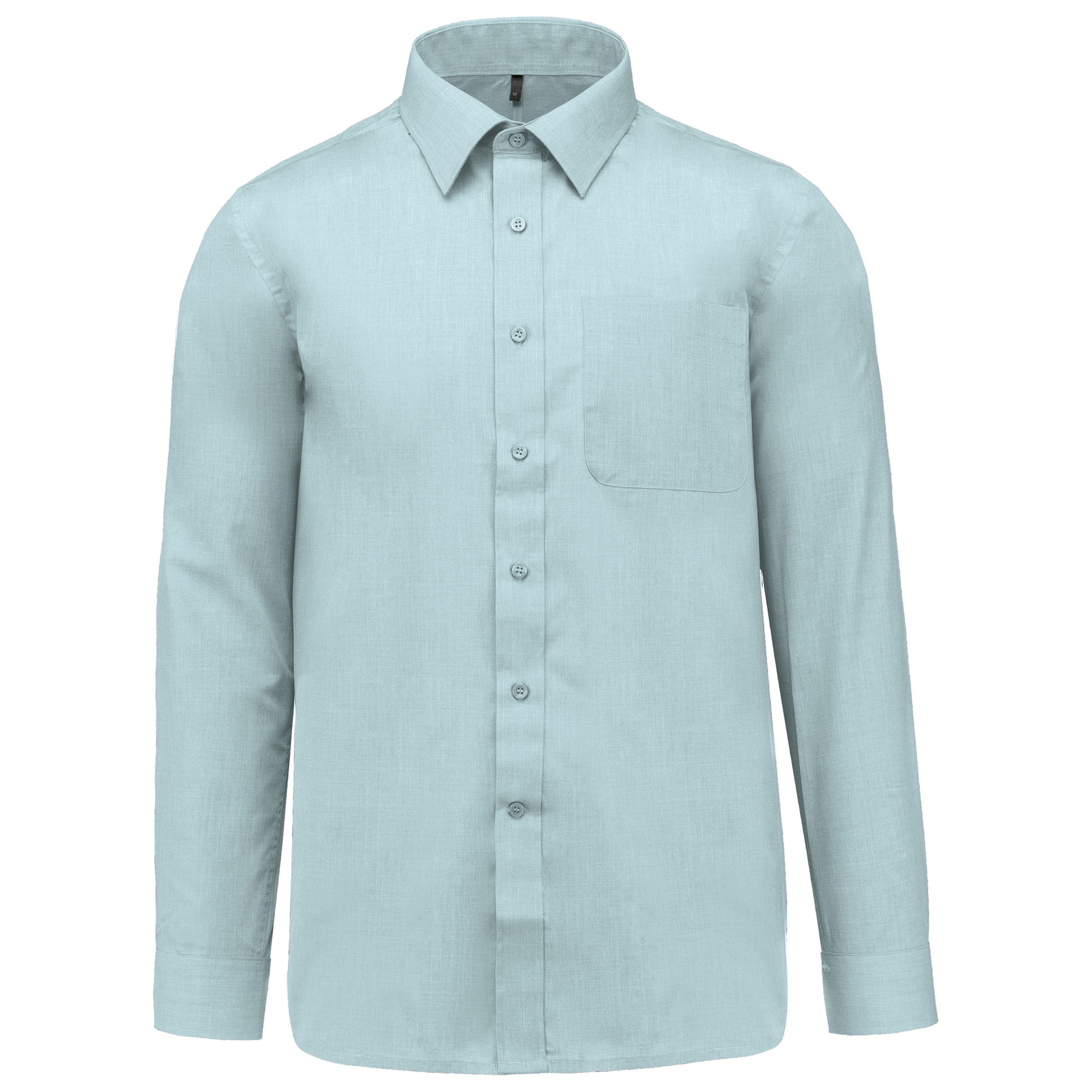 65% poliestere / 35% cotone popeline. Tessuto facile da stirare. Colletto alla Francese con stecche. Bottoni tono su tono. Taschino lato sinistro. Carrè posteriore. Cuciture a doppia piega. Polsino regolabile. 2 bottoni di ricambio.