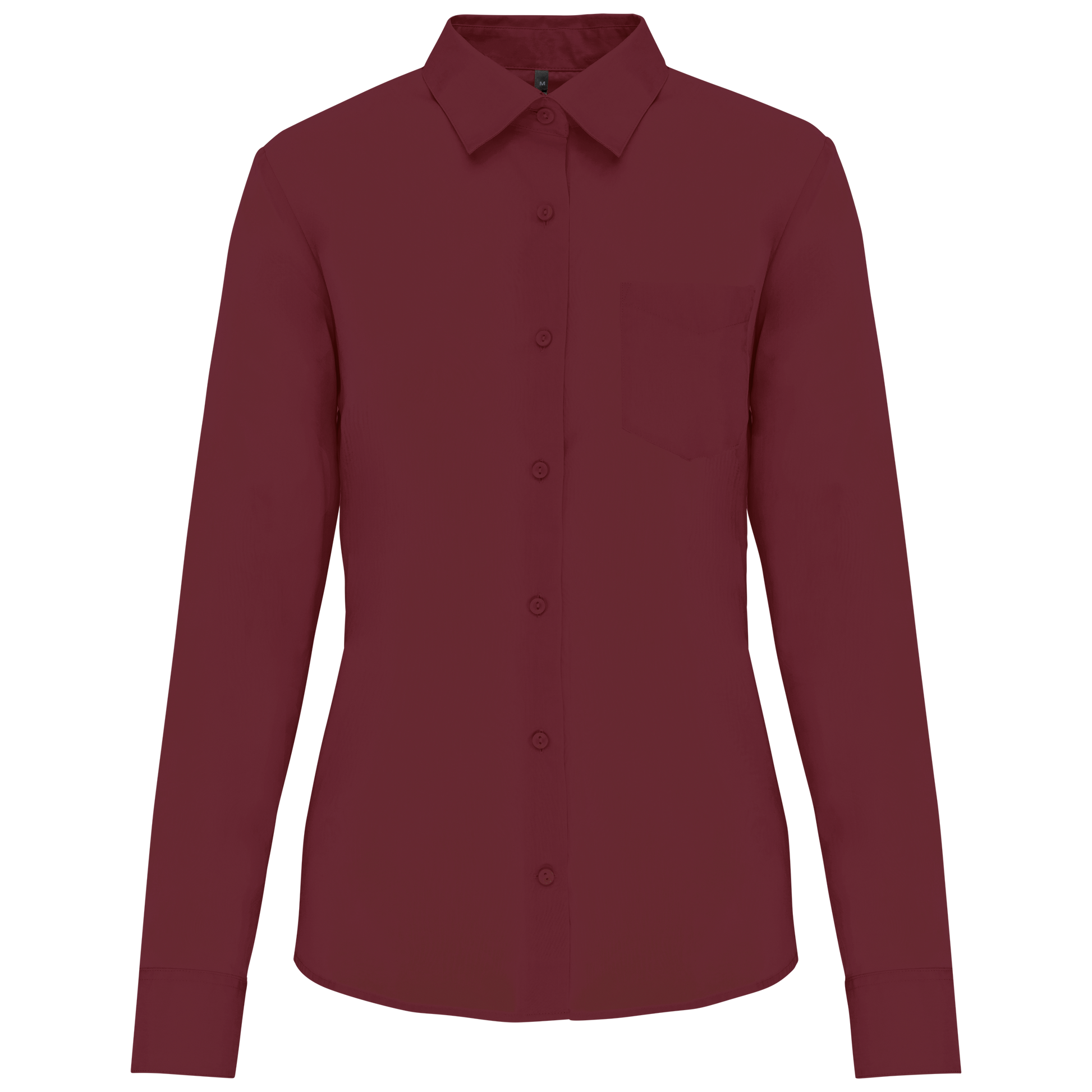 65% poliestere / 35% cotone popeline. Tessuto facile da stirare. Colletto morbido. Bottoni tono su tono. Taschino lato sinistro. Posino regolabile. 1 bottone di riserva. Orlo stondato.