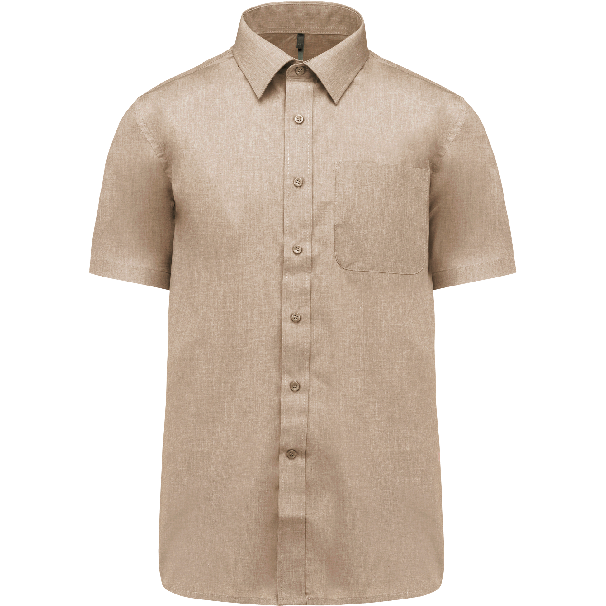 65% poliestere / 35% cotone popeline. Tessuto facile da stirare. Colletto alla Francese con stecche. Bottoni tono su tono. Taschino lato sinistro. Carrè posteriore. Cuciture a doppia piega. 1 Bottone di ricambio.