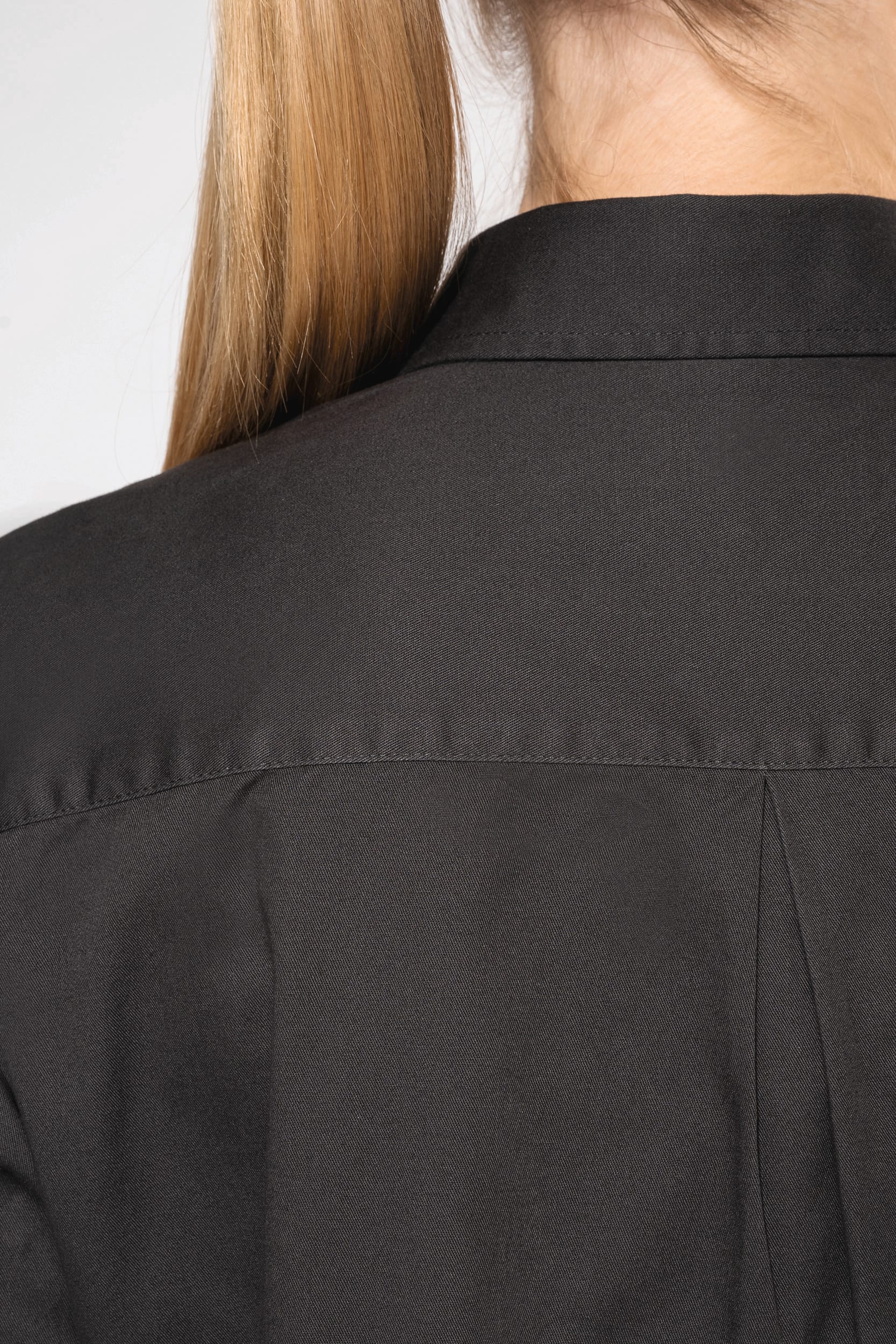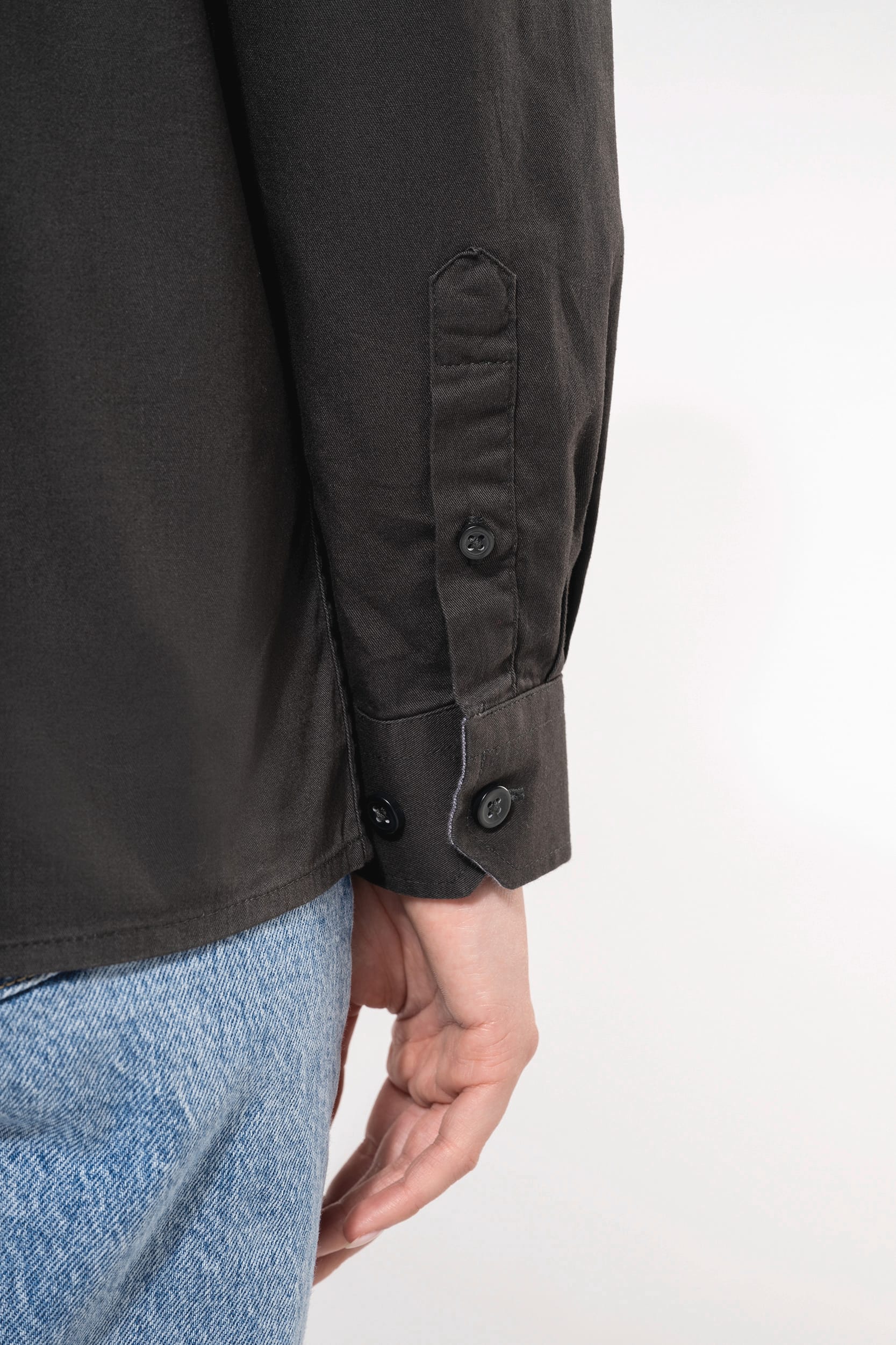 100% cotone. Tessuto pettinato effetto manopesca. Bottoni tono su tono. Taschino sul petto lato cuore. Interno listino collo e polsini a contrasto in colore Oxford silver. Parte posteriore con 1 piega comfort e inserto foderato. Finitura con cuciture ribattute. Polsino regolabile con pattina con bottone. Bottone di riserva.