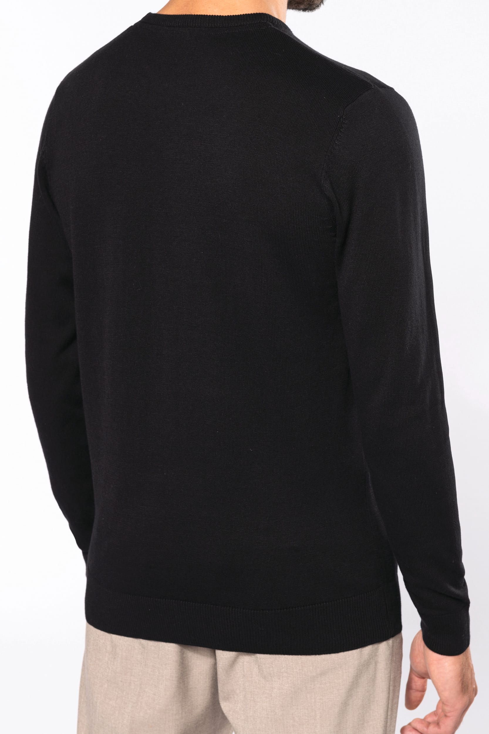 50% cotone / 50% acrilico. Taglio dritto. Collo con costine a doppio strato. Nastrino al collo.