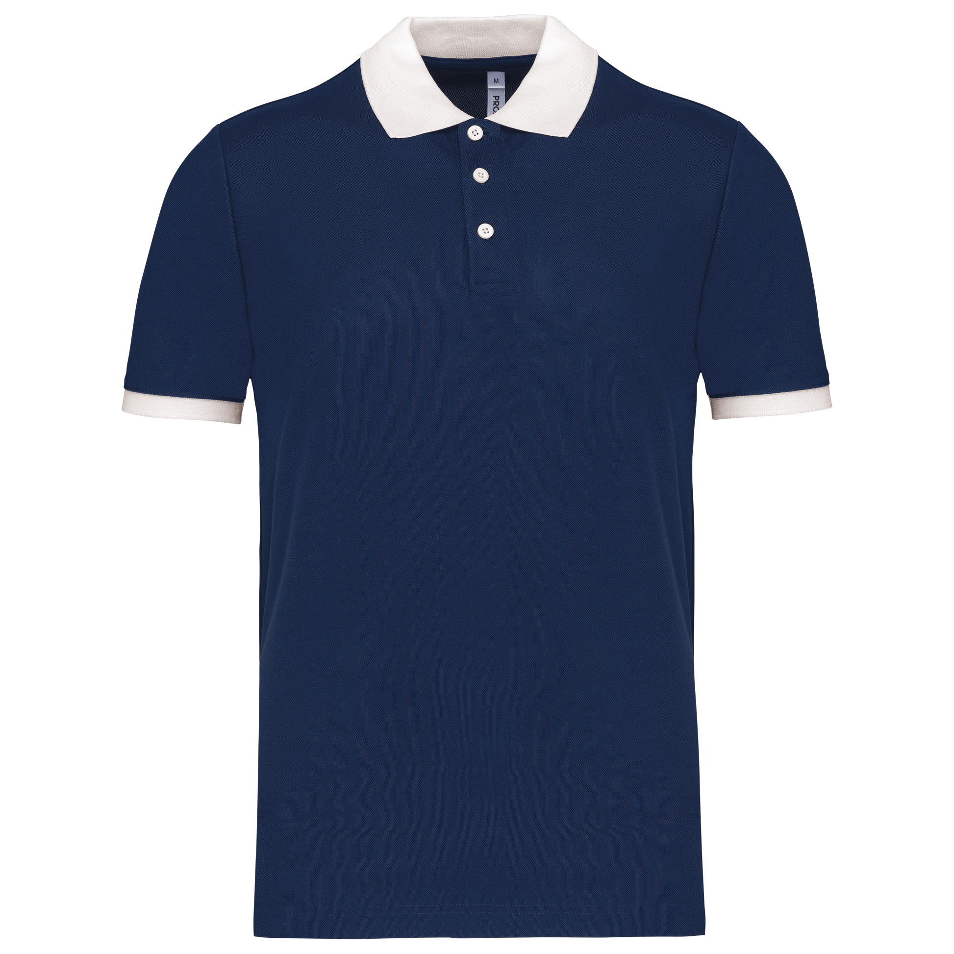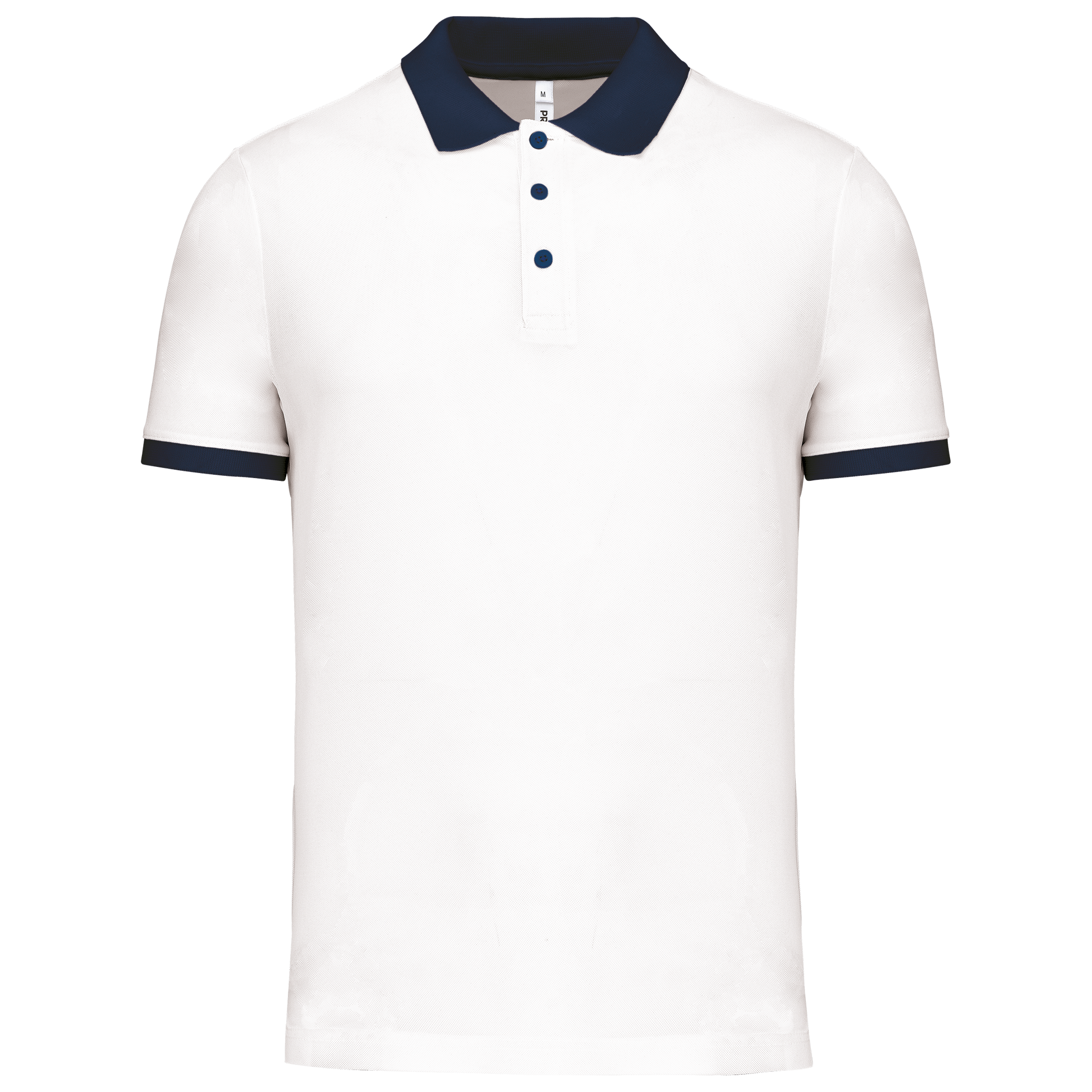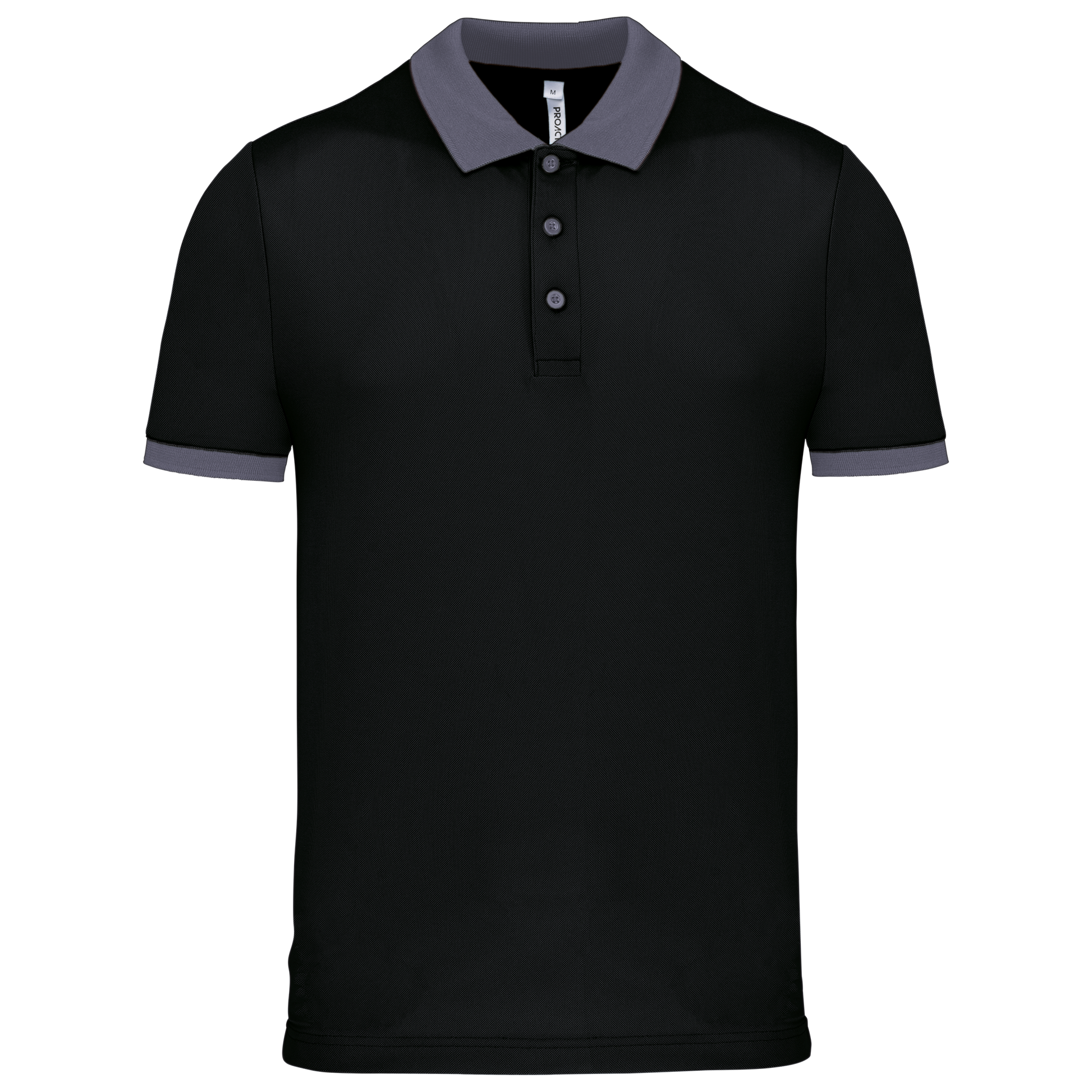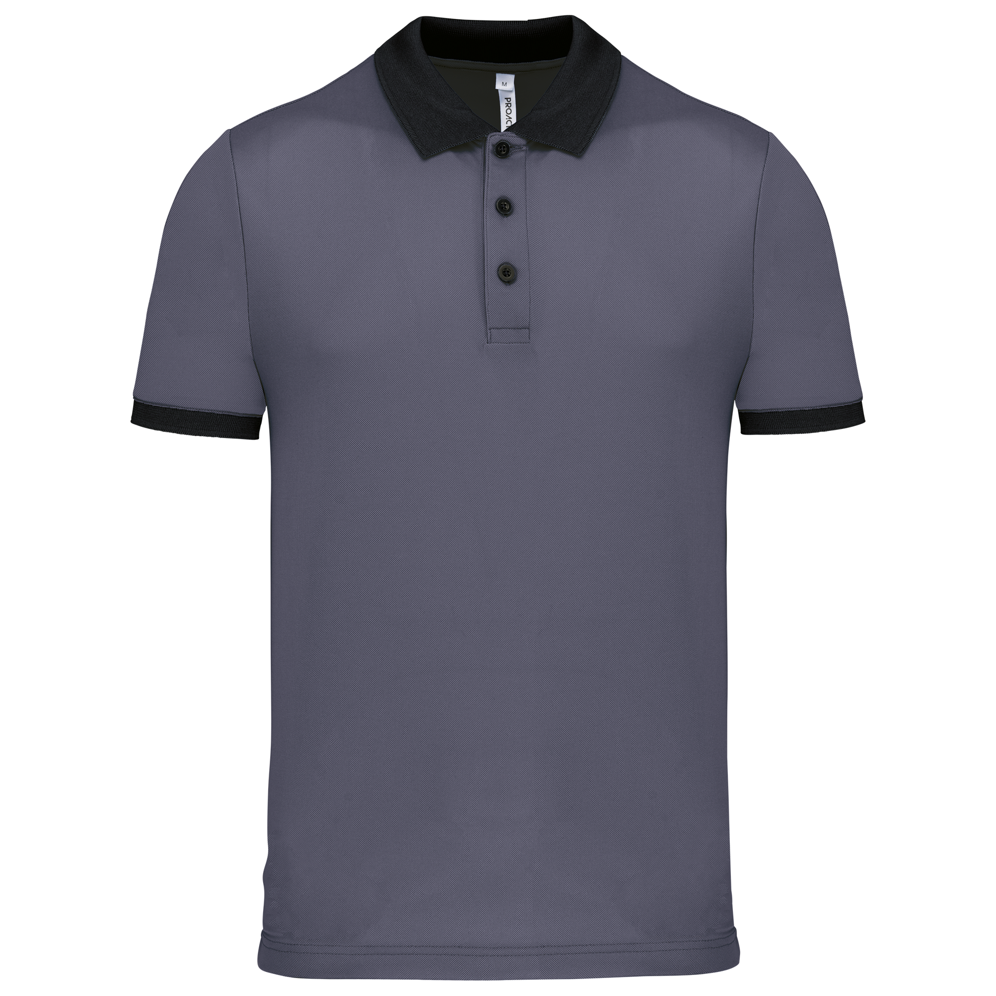 100% poliestere piqué Cool Plus®. Taglio dritto. Colletto e fondo manica a costine a contrasto. Pattina a 3 bottoni (a contrasto o tinta unita a seconda del modello). Spacchetti laterali.