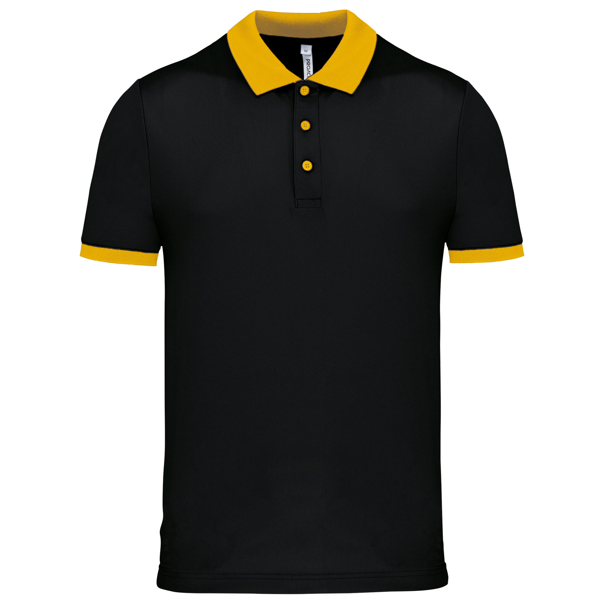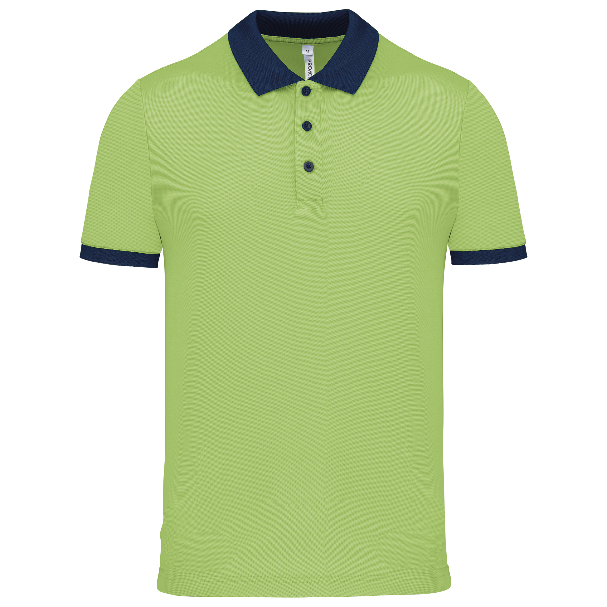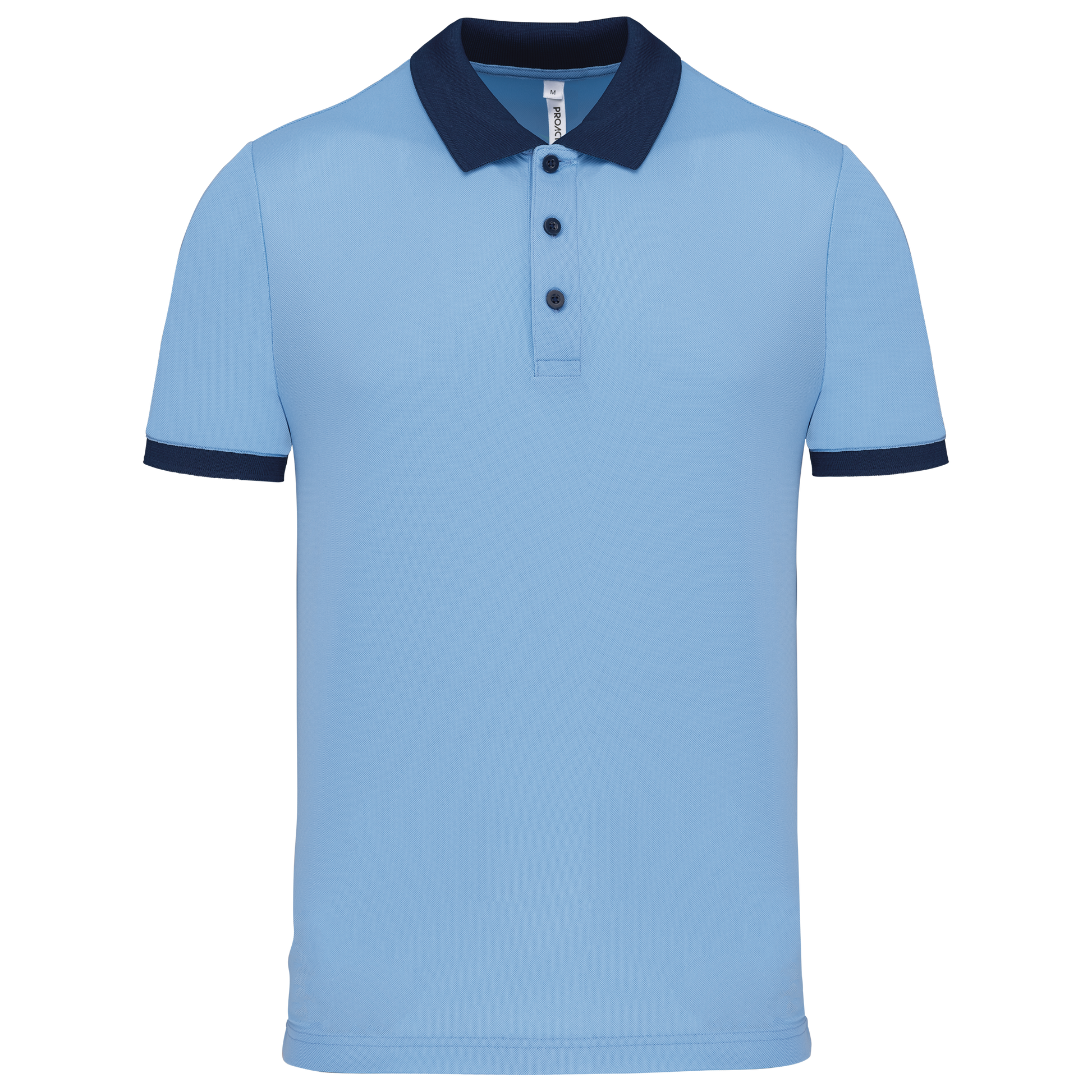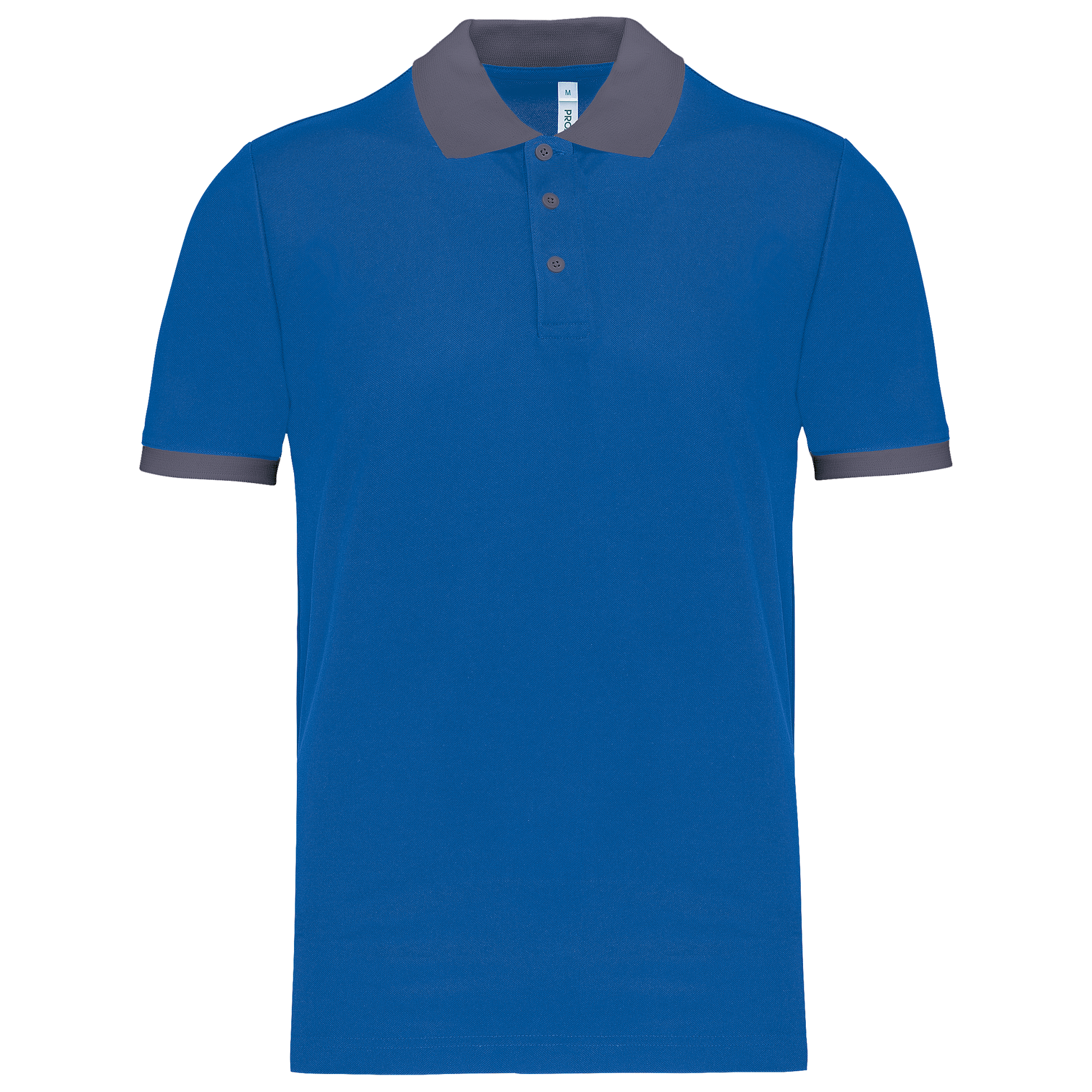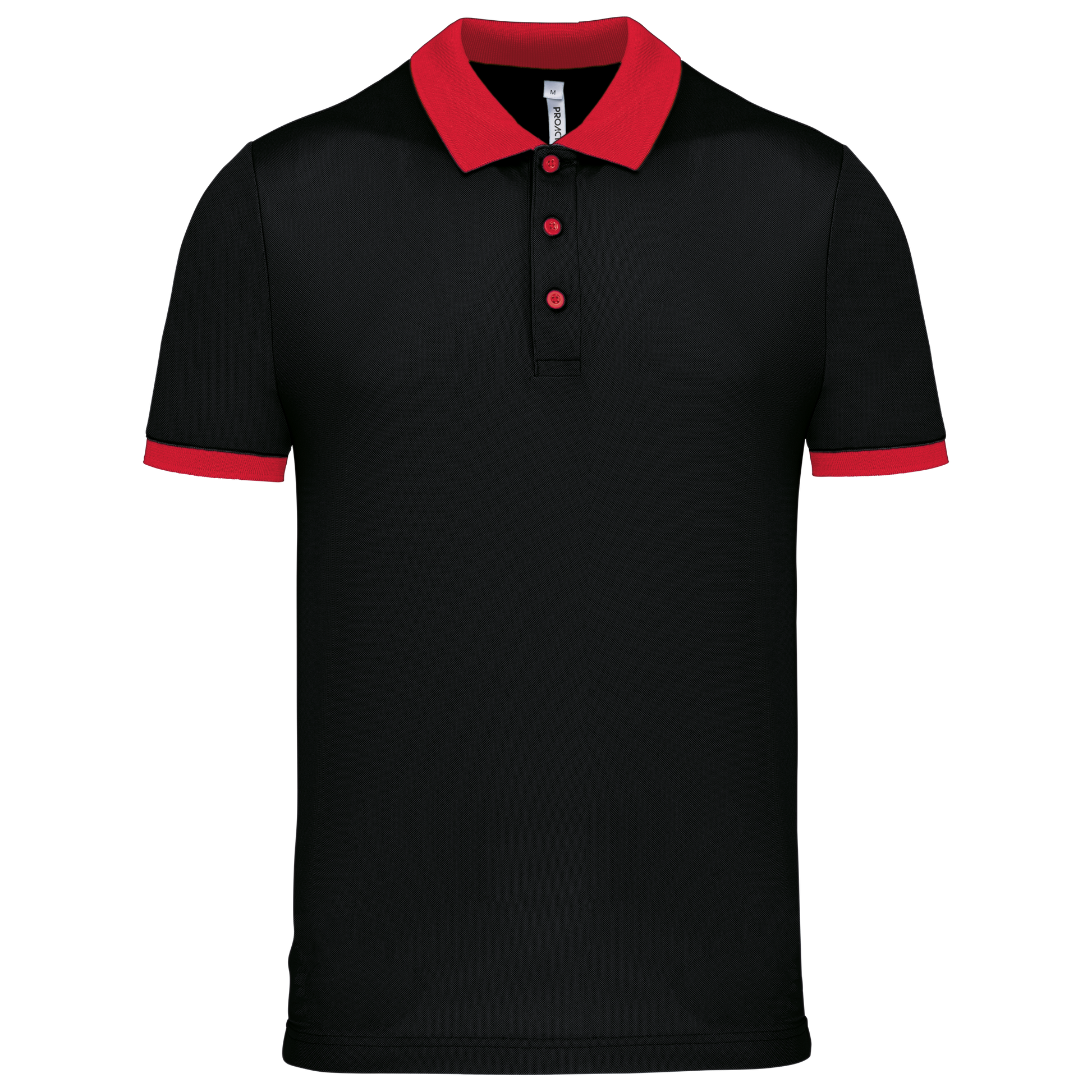 100% poliestere piqué Cool Plus®. Taglio dritto. Colletto e fondo manica a costine a contrasto. Pattina a 3 bottoni (a contrasto o tinta unita a seconda del modello). Spacchetti laterali.