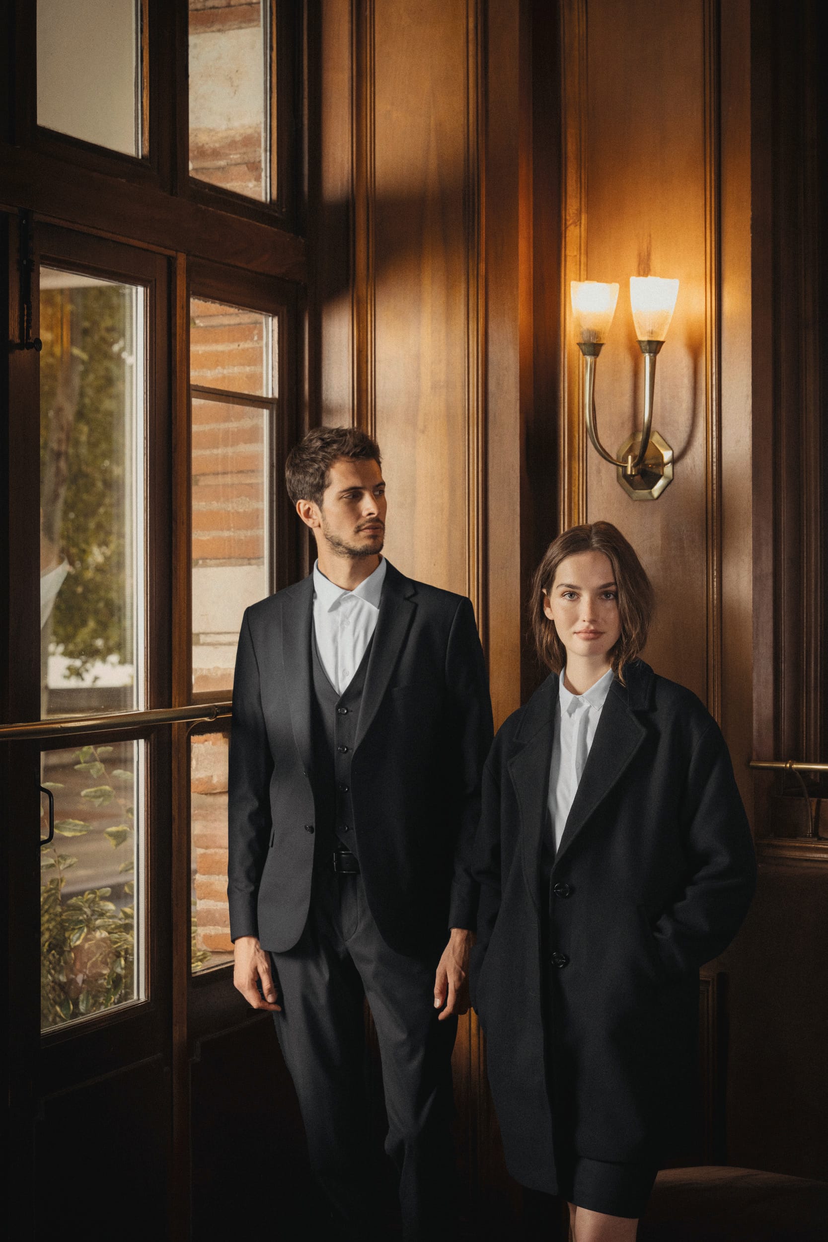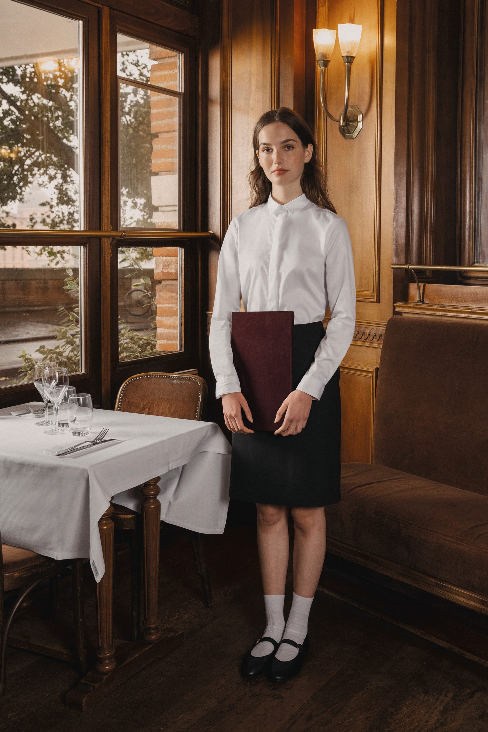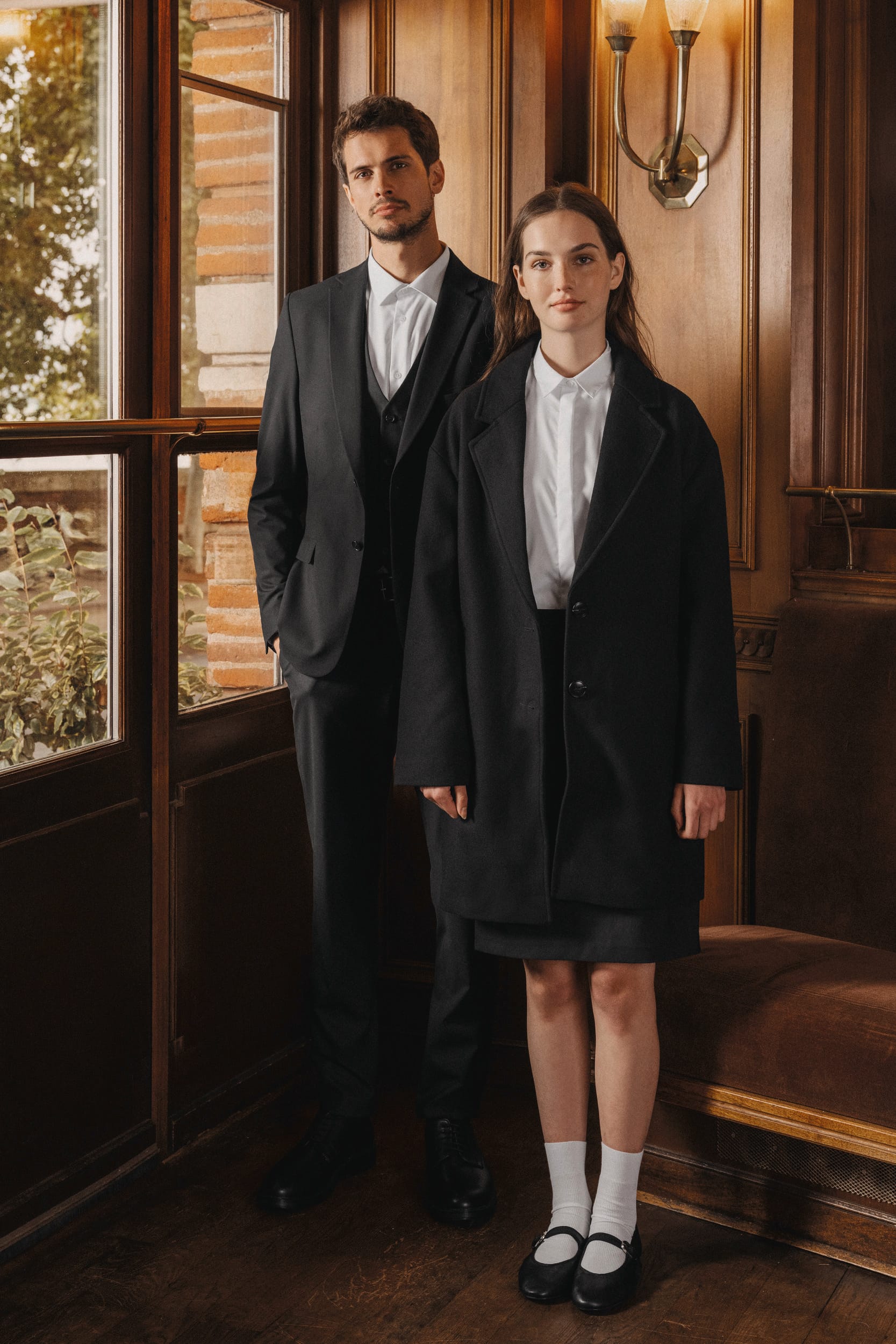 50% poliestere / 23% viscosa / 22% lana / 5% elastan. Fodera 100% poliestere stretch. 2 pince davanti in vita e 2 pince sul retro. Zip di apertura sul retro, protetta all'interno da un sottoponte tenuto in posizione da un bottone per un maggiore comfort. Spacchetto posteriore a fondo gonna, fodera a farfalla con spacchetto. Taglio dritto. Nessuna etichetta con il nome del marchio; solo una piccola etichetta con l'indicazione della taglia per semplificare la personalizzazione.